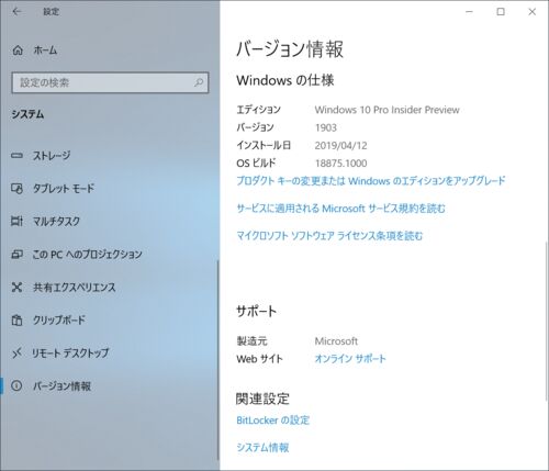 Windows10 19H1もリリースの準備が整い、Release Previewに移動したことに伴い、Insider Preview FastとSkipAheadが合流し、Build 18875に統合されました。 Insiderの設定をファスト、スキップのどちらかにしておくと20H1のInsider Previewが今後入手できる…