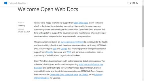 Edge 88 の記事を探そうと Windows Blog を確認していたところ、 Open Web Docs という取り組みに Microsoft が参画するという内容が上がっていたので共有しておきたいと思います。 https://blogs.windows.com/msedgedev/2021/01/25/welcome-open-web-docs/?…