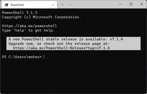 Windows 11 から標準付属しているターミナルでは、 Windows PowerShell だけではなく PowerShell を Shell として利用することができるようになっています。 その PowerShell を起動したところ、バージョンが古くなった旨が通知されてきました。 ここに表示…