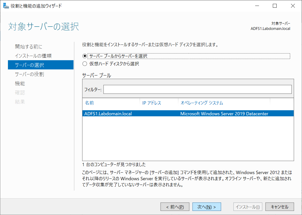 今回はWindows Server 2019ですが、2012でも、2016でもインストールではほとんど変わりません。