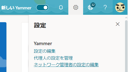 といっても、 Microsoft 365 に吸収される前の Yammer から見た時の新ネットワークへの切り替えです笑