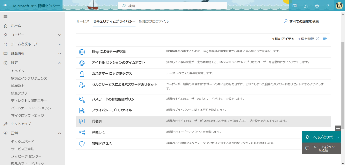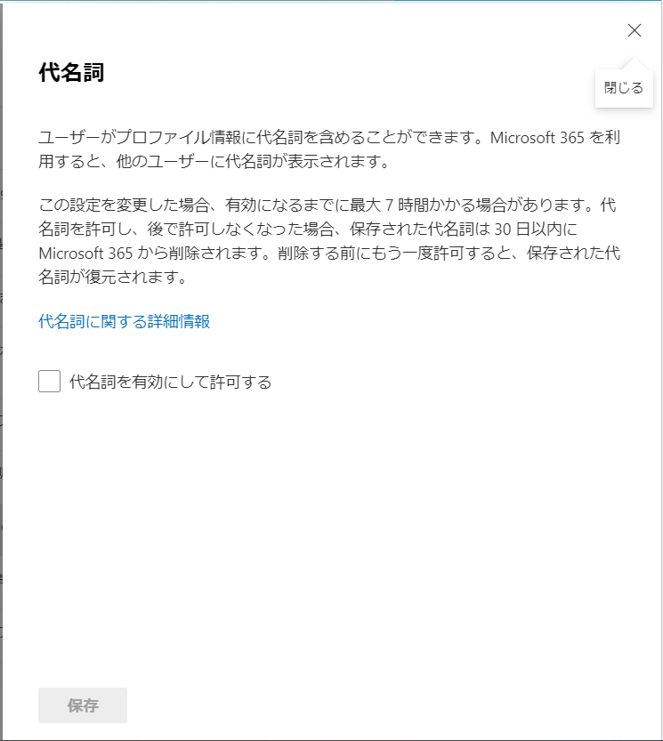 代名詞は Microsoft 365 管理センターで設定できる機能です。
