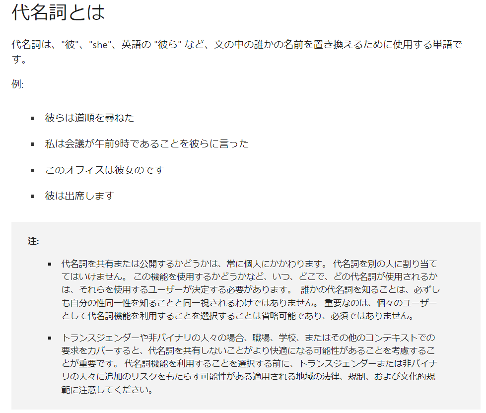 Microsoft の社員さんと打ち合わせを行うと最近 he/him they/them といったような文字が名前の下に記載されていることがあり不思議に思っていました。