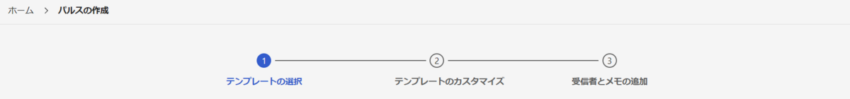 パルス作成の流れはテンプレートを選んでカスタマイズし、誰に対して送るか選ぶという形です。
