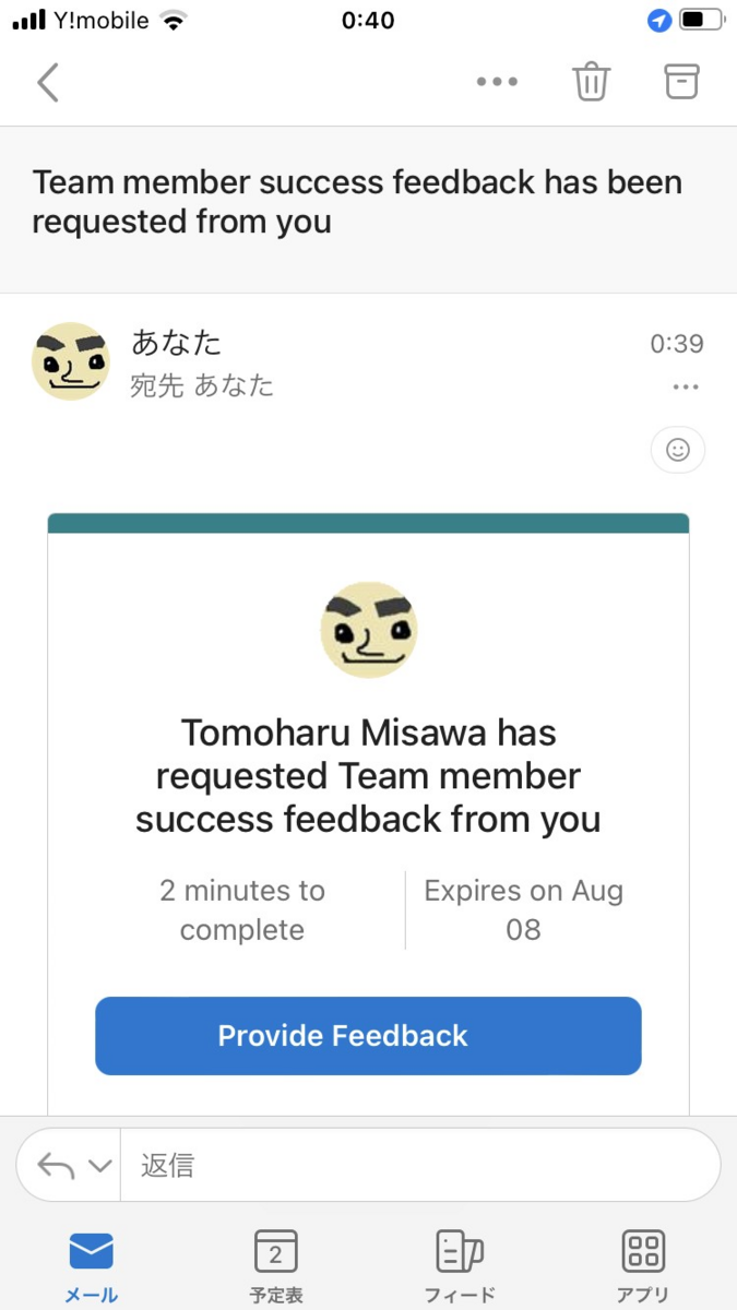 この時、フィードバックの要求元という欄に人もしくはチームアドレスを入力することでその方に調査依頼を送る形となります。
