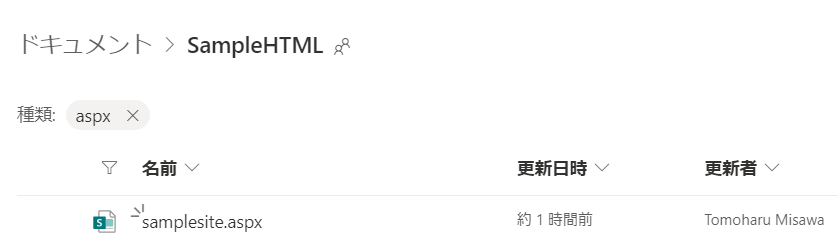 以下のコマンドレットを実行して PowerShell で設定を変更してから HTML ファイルの拡張子を aspx に変更してアップロードすることでようやく HTML ファイルを aspx ファイルとしてブラウザーから表示させることができるようになります。