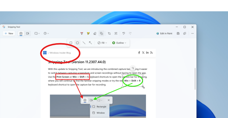 Win + Shift + S でキャプチャした後に Snipping Tool に移動すると、図を簡単に付けられるようになりました。
