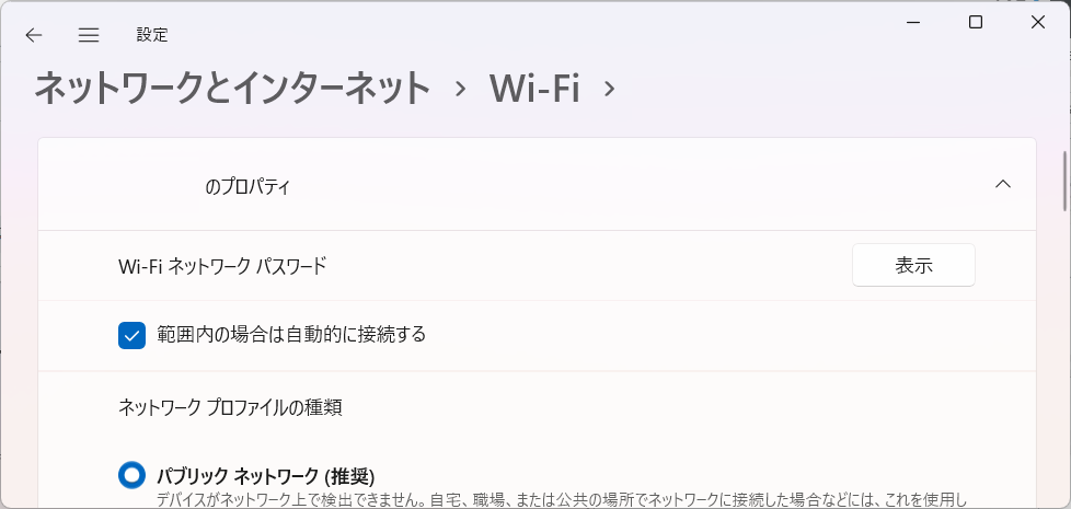 さらに次は Wi-Fi のパスワードの表示が変更された件です。