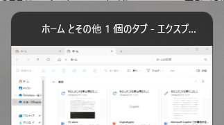 Alt + Tab で表示されるアプリ一覧では、エクスプローラーがタブ表示状態のときはタブの開いている数が表示されます。