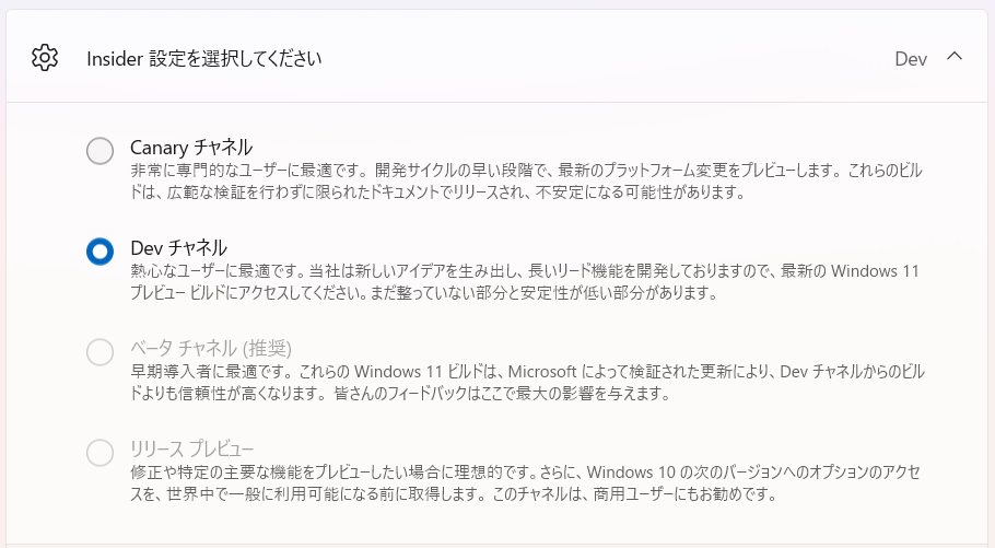 今は Canary と Dev が交換が可能となっており、そのうち Canary が別のバージョンに変わっていくということですね。