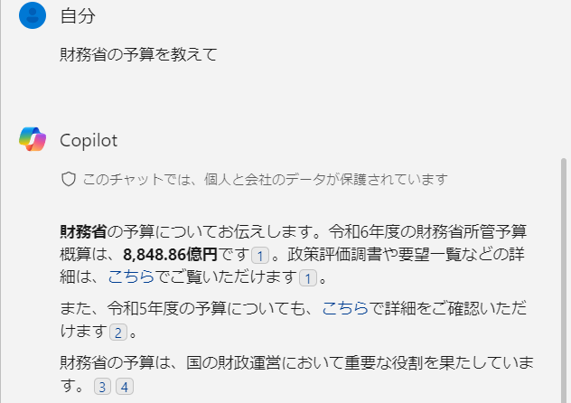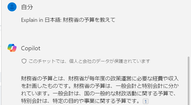 Copilot を使用すると選択した文字がダイアログに表示されます。