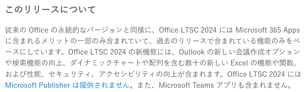 今回も 2021 の永続版リリースと同じように Office LTSC 2024 と Office 2024 の 2 種類がアナウンスされています。