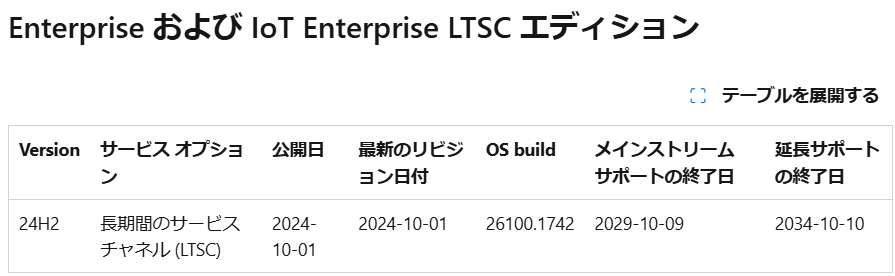 今回の 24H2 は LTSC もリリースされており、 Windows 11 の最遅のサポート終了となる 2034 年 10 月 10 日までのサポートが確約されました。今の PC は進歩が速いので、最後まで利用することはまれな気もしますが、こうやって伸びていくと安心ではありますよね。