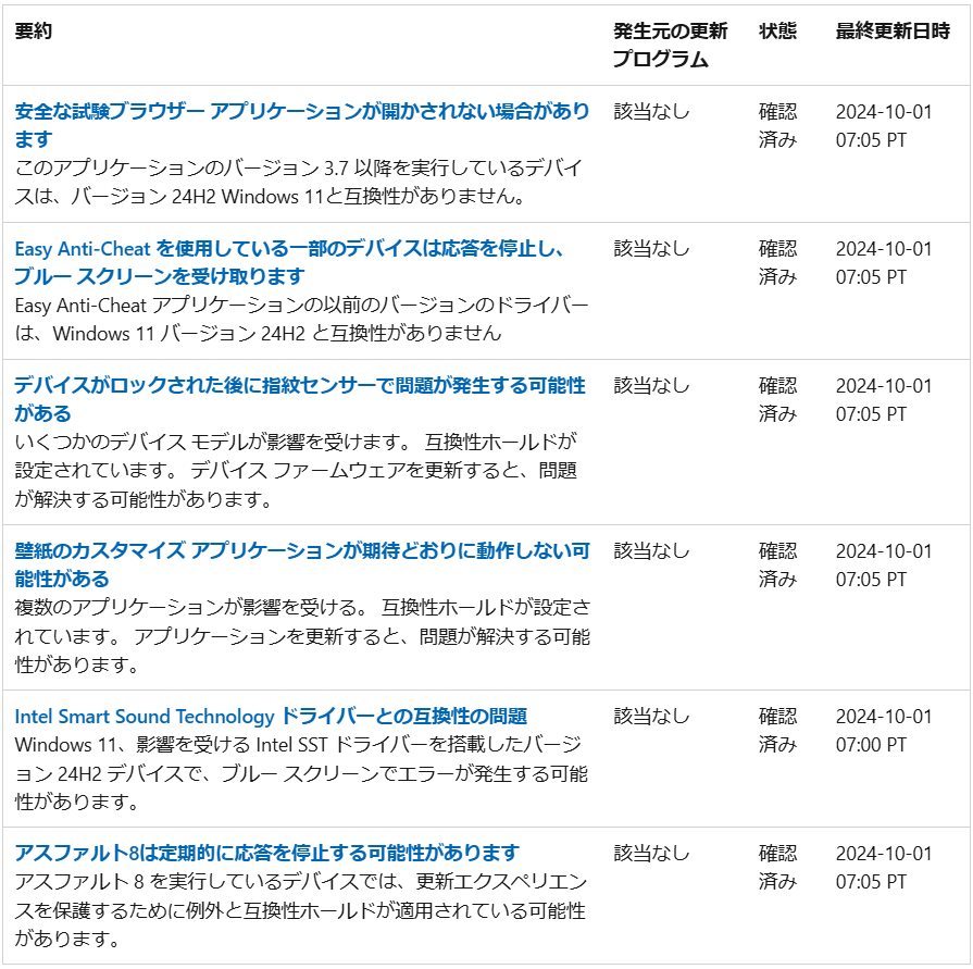これを見ると一部のアプリで動作ができないなどがあるようですが、致命的に何もできなくなるようなものは上がっていません。これらのアプリを利用していない状況で、 Copilot + PC な環境であればぜひ早めに適用していきたいところです。
