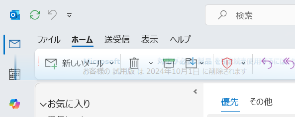 旧 Outlook ではこの機能は使える状態になっており、同じ動作を行ってみたところが以下のキャプチャとなっています。