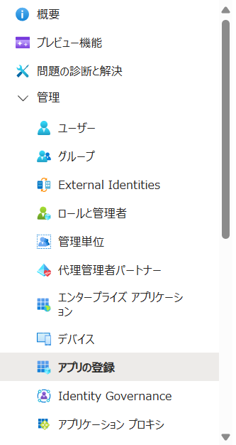 設定は EntraID の画面から行います。以下のアプリの登録画面からですね。